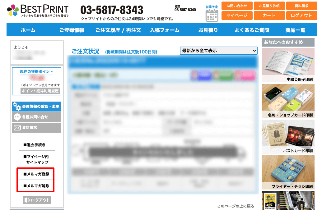 印刷通販ベストプリントのメールマガジン受信・解除についてのページです。