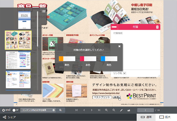 閲覧者が電子ブック内へ付箋を貼り付けることができます。