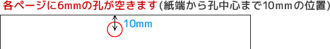 中綴じカレンダー印刷は、壁掛け用の孔開け加工が施工されます。ページの天(上)地(下)部分に社名等などの重要な要素を配置される場合はご注意ください。