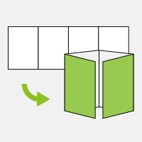 長辺を四つに分けて各面の横幅が等しくなるように蛇腹に折る加工です。4分割した値が等しくなるようにします。